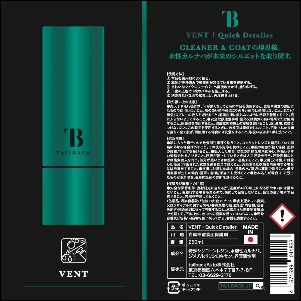 TAILBACKとしてはクイックディテイラーの